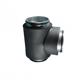 Te boca reducida segmentada 90º de acero galvanizado, revestido en su exterior con aislamiento térmico y acústico tipo espuma elastomérica de célula cerrada, que reduce las pérdidas térmicas y evita la condensación en conductos metálicos. Incorpora junta EPDM en las bocas de conexión que le confieren una estanquidad clase C.(ATC3) a la red metálica de distribución de aire.